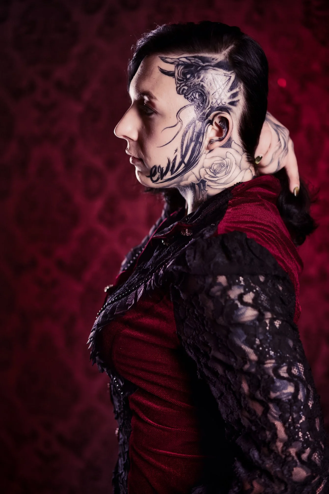 Ich liebe es, mich in Kunst auszudrücken. Sei es vor der Kamera, auf der Bühne oder in den Geschichten, die meine Tattoos erzählen. Wenn du meine Welt kennenlernen möchtest, tauche ein in meine Bilder, meine Shows und meineVision von Dark Art & Alternativer Eleganz.